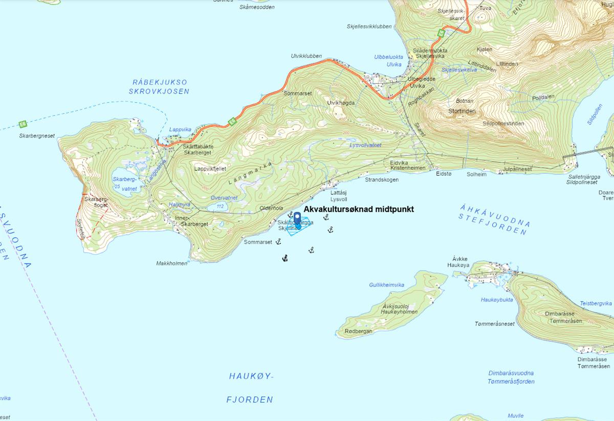 Man kan se akvakultursøknaden i karttjenesten Yggdrasil her.
