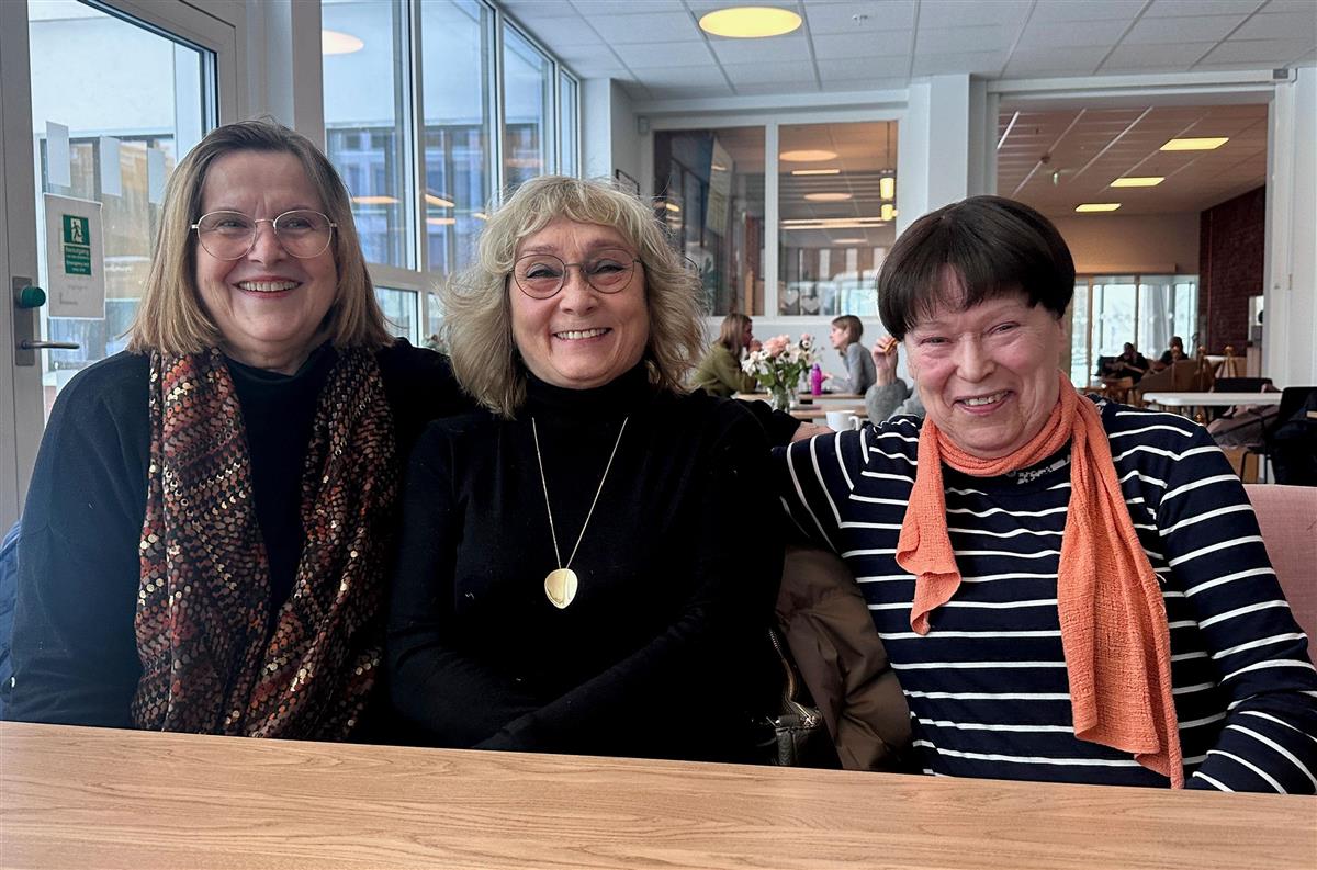 FØRSTEREIS: Grethe Hansen, Hildur Garden Hansen og Reidun Thomassen benyttet seg av tilbudet med seniorkino for første gang, men de tre venninne bedyret at det ikke ville bli med det ene: - Et flott tilbud vi skal benytte oss av langt oftere!